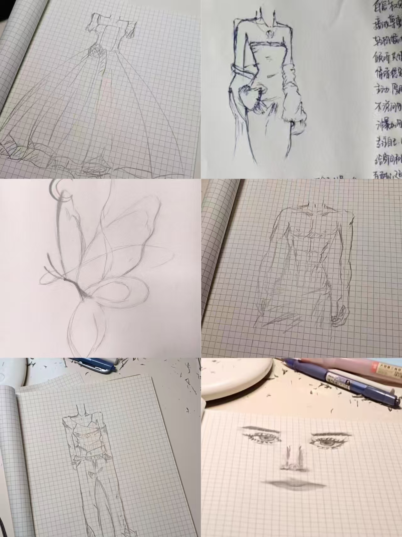 小时候喜欢给玩偶们(我想他们有自己的名字、灵魂)做衣服、讲课(老房子有一面墙都是我给娃娃们上课的记录的黑板字)、化妆,长大后就变成了临摹服装设计图。
