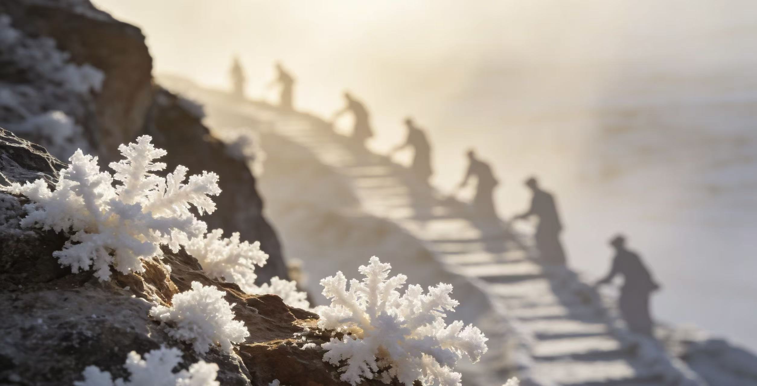 注:岩缝生盐花,丹心照古道。(本图片为AI生成)