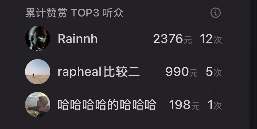 💗截至当期,隆重感谢累计赞赏榜单TOP3的听众👑「 Rainnh 」🥈「 rapheal比较二 」🥉「 哈哈哈哈的哈哈哈 」,所有的赞赏都将会作为我们的节目营销支出,让我们彼此可以在茫茫人海中寻找到更多臭味相投的同伴一路向前、无问东西。