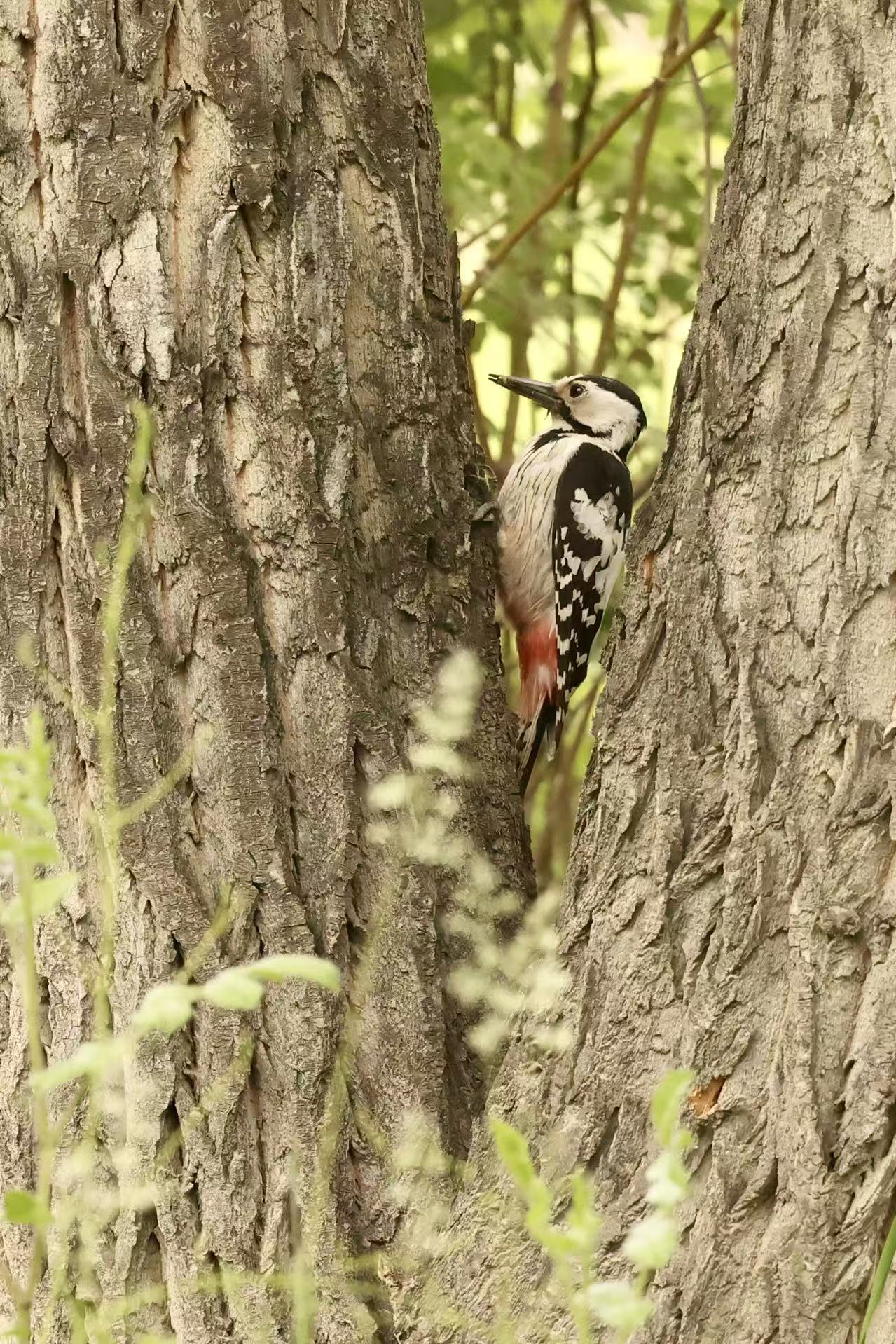 白背啄木鸟 (英文名:White-backed Woodpecker,学名:Dendrocopos leucotos),是䴕形目啄木鸟科啄木鸟属的鸟类。体型略大于大斑啄木鸟(果然!),最显著特征为下背白色和臀部红色。广泛分布于欧亚地区,偏好未受干扰、拥有大量朽木的成熟落叶林及混交林。因生存环境受威胁,部分地区数量减少。