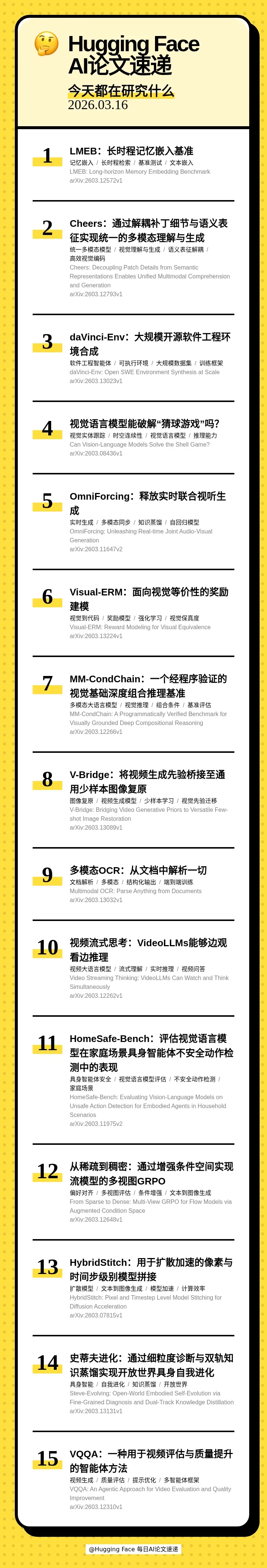 01:12 🔄 Cheers: Decoupling Patch Details from Semantic Representations Enables Unified Multimodal Comprehension and Generation(Cheers:通过解耦补丁细节与语义表征实现统一的多模态理解与生成)