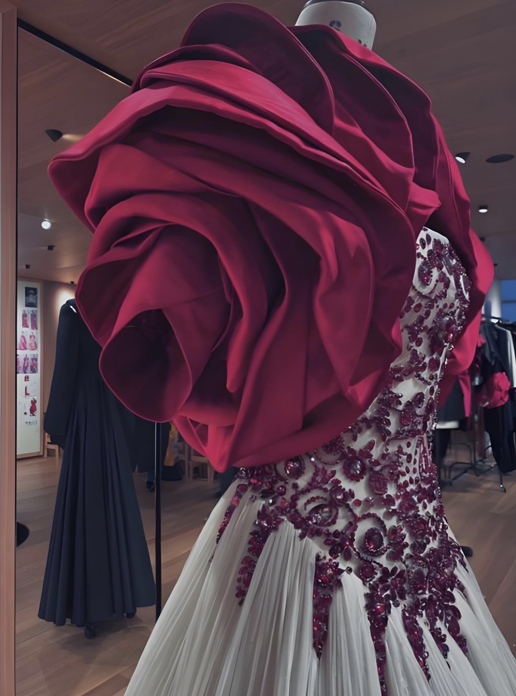 Donna以麦昆草图完成的玫瑰花苞袖时装