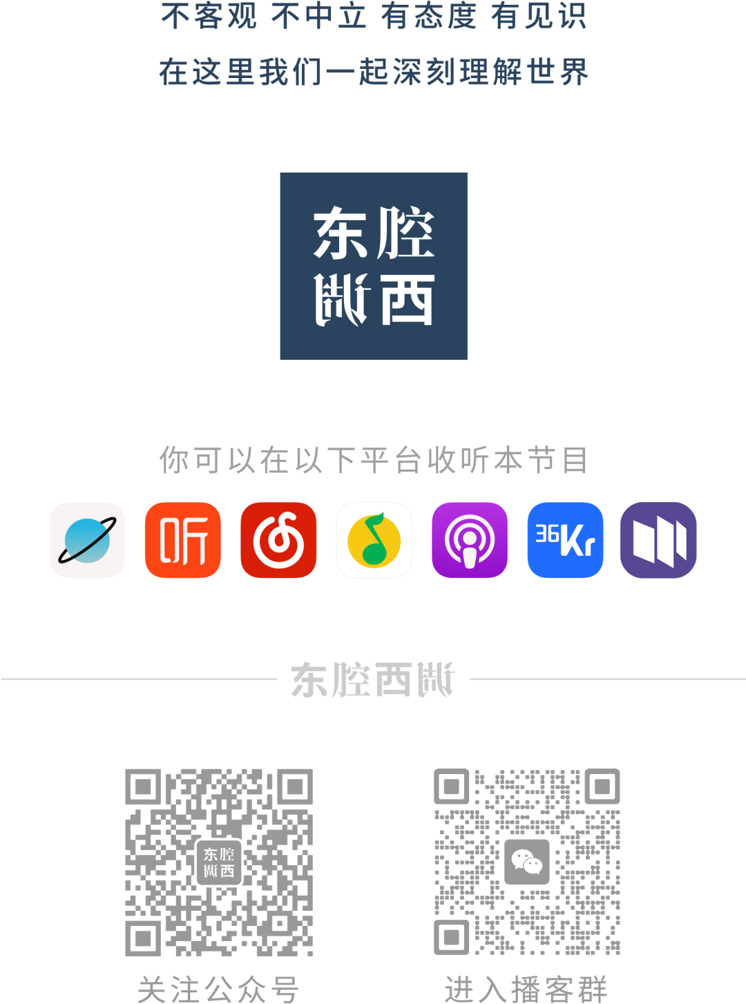 一样的世界,不一样的思考。「东腔西调」是一档由爱道思EIDOS制作播出的轻文化播客,每周五更新,不定期加更,感谢你的收听。你可以在小宇宙、喜马拉雅、苹果播客、网易云音乐、QQ音乐、三联中读、荔枝FM、虎嗅等平台找到我们。欢迎关注、评论、转发,我们真诚感谢所有反馈,同时也期待更多脑洞。