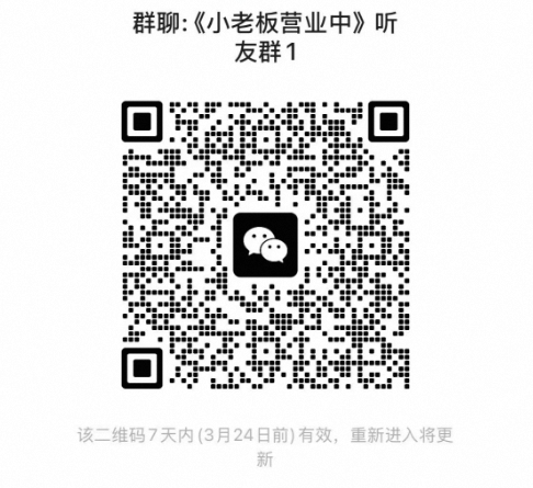 扫码进入听友群,查看最新动态,活动通知,和创业者们一块儿交流👏欢迎大家在小红书、抖音、视频号搜索「小老板营业中」,观看往期视频~