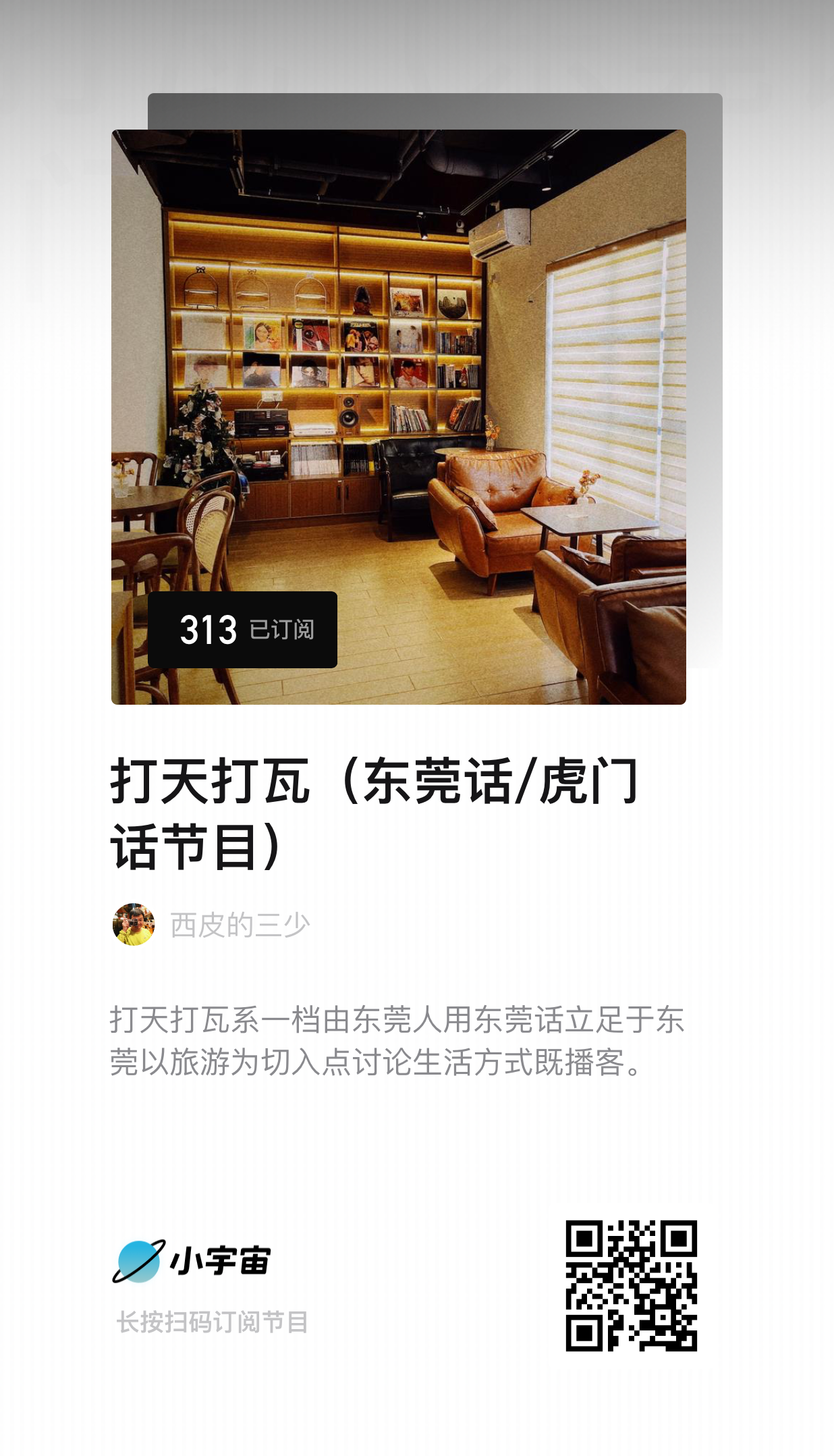 “打天打瓦”系一档由东莞人用东莞话立足于东莞以旅游为切入点讨论生活方式既播客。