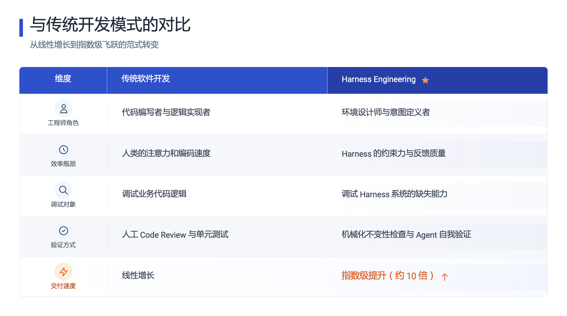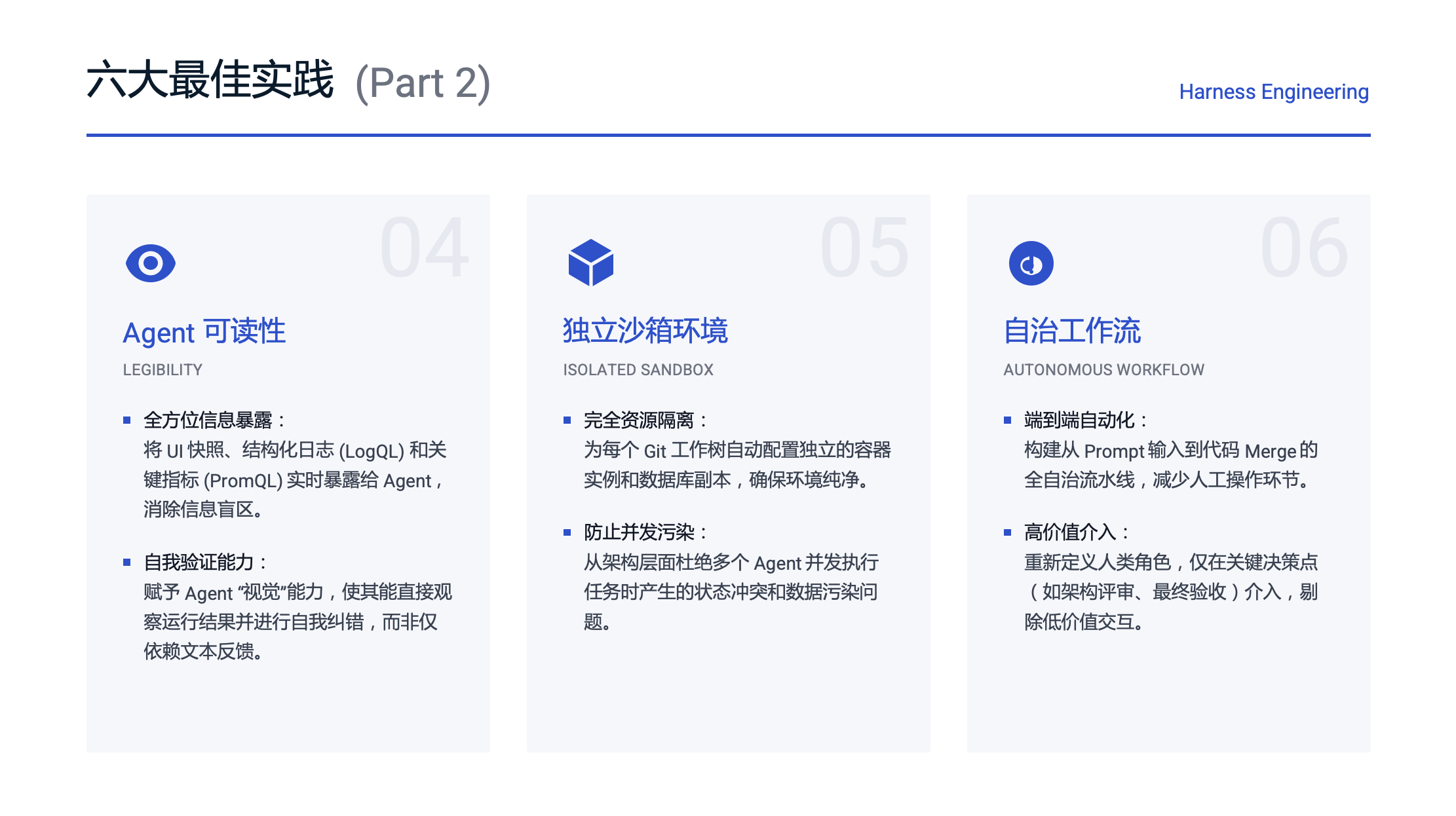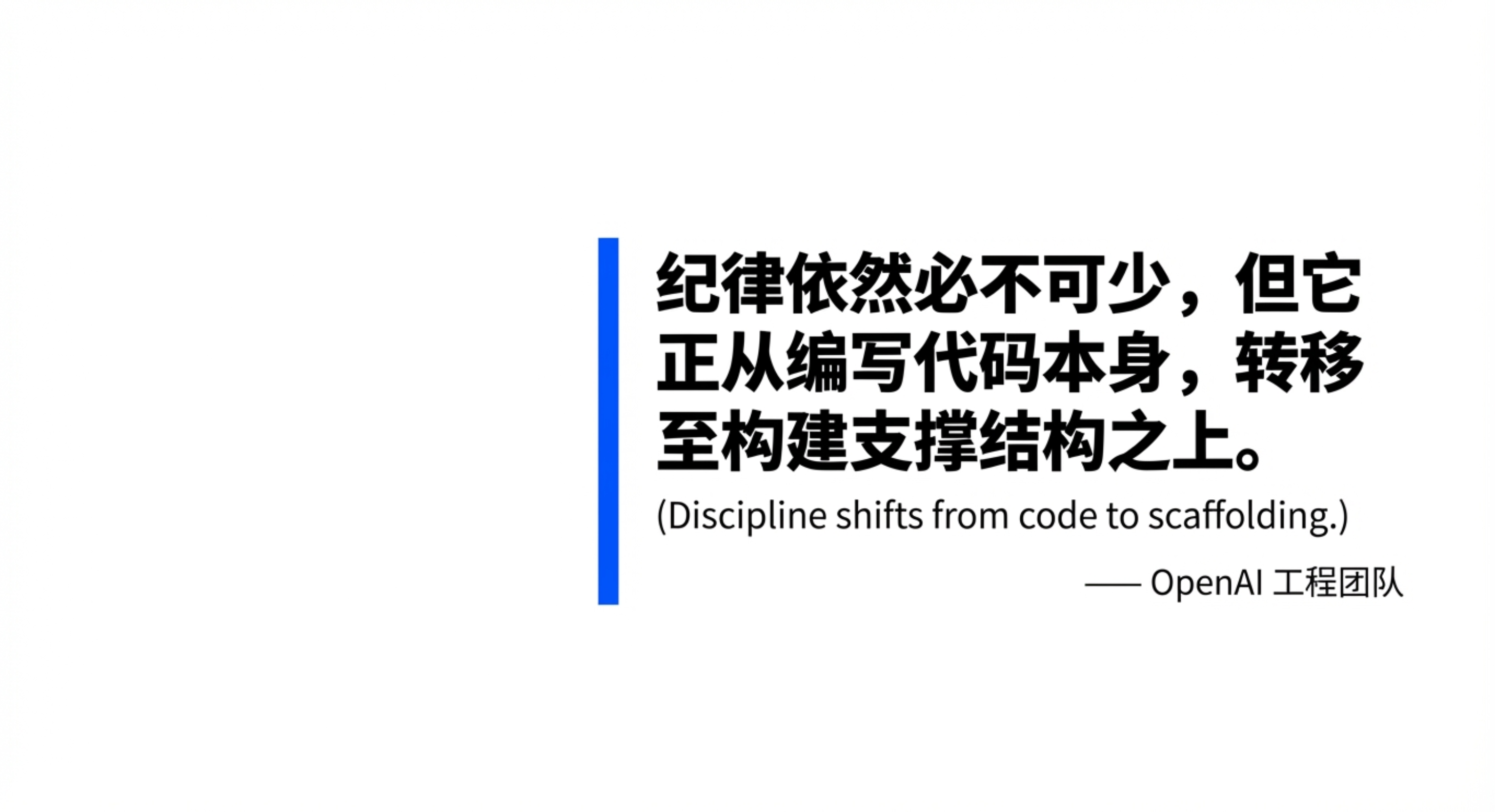 - 工程师角色的根本转变:在新的范式下,工程师的工作重心从“手动编写代码”,转向设计环境、明确意图和构建反馈回路。人类负责掌舵(设定目标和验收标准),而智能体负责执行(编写代码、测试和部署)。