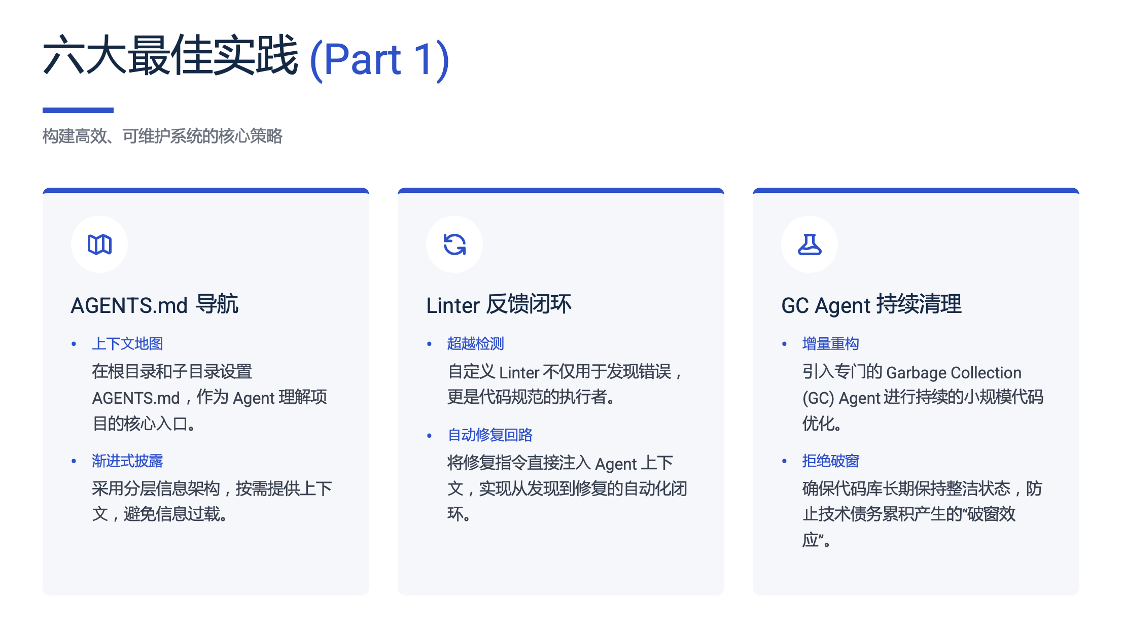 防止技术债务:通过这种持续的小额“偿还”,确保代码库不会因 AI 的持续产出而腐烂。