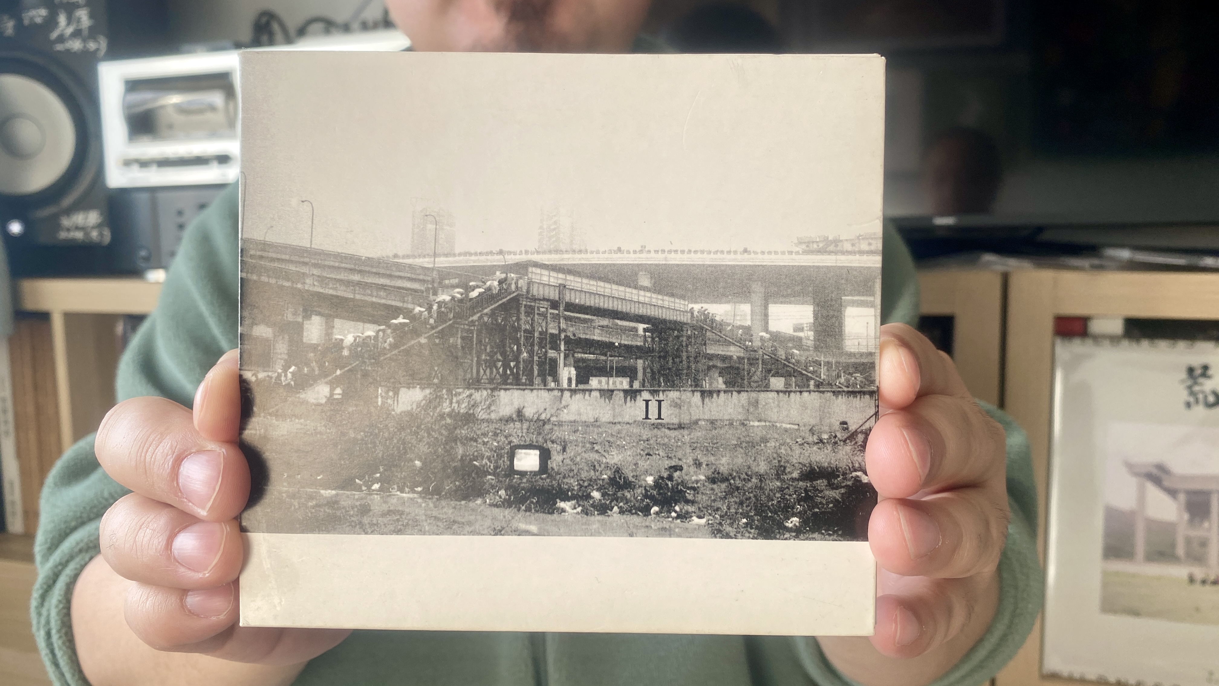 我们随便聊了两句。然后我参观了他的便携式裁纸刀。然后拿着他新做的陈维的唱片回工作室了。
