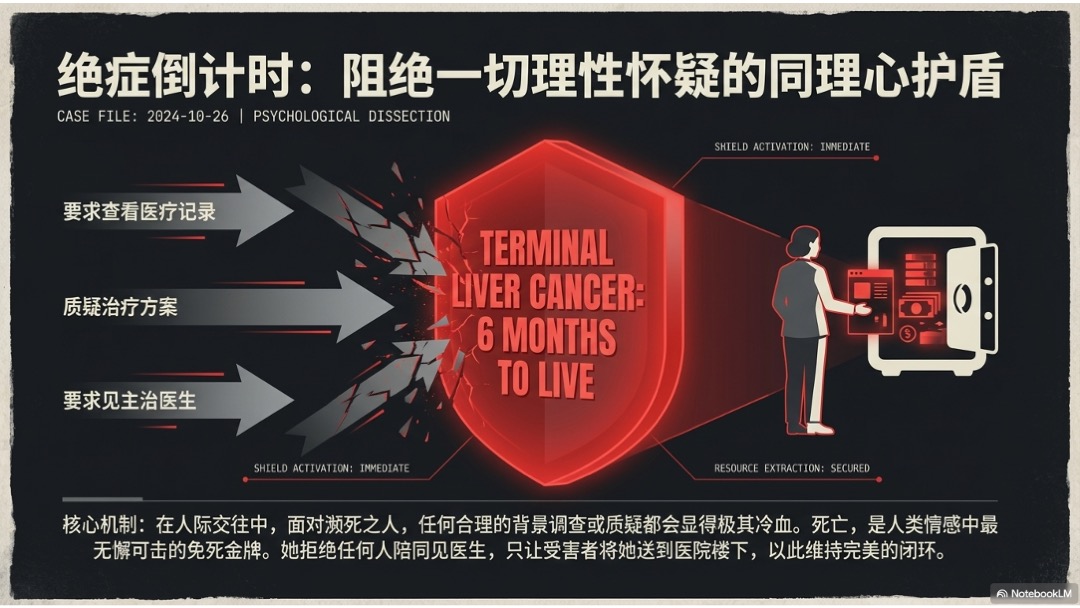 这期节目讲一个被“绝症”包裹的爱情骗局。一个自称患有晚期疾病、带着孩子逃离暴力关系的女人,精准击中他人的同情与责任感,在信任中不断索取金钱、情感与生活空间。随着时间推进,怀孕、流产、旅行、法律纠纷层层叠加,谎言也越织越密。直到某个节点,所有细节开始对不上,这场“深情故事”逐渐显露出操控与欺骗的本质。当善良被利用、共情被操控,这个故事更像一次关于信任边界的提醒。