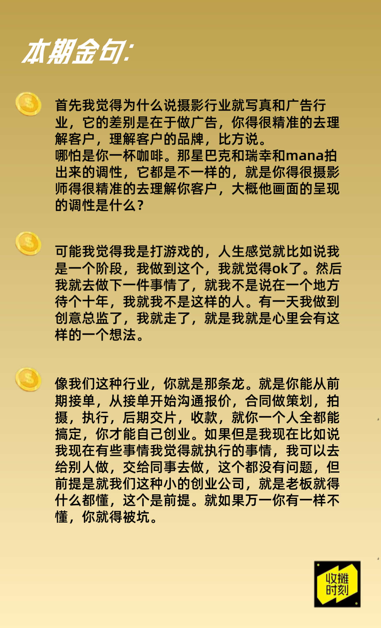 这是一期充满细节、真实可感的创业者对话,无论你对摄影行业、freelancer转型,还是小型创意工作室的生存发展感兴趣,都能从中获得启发。