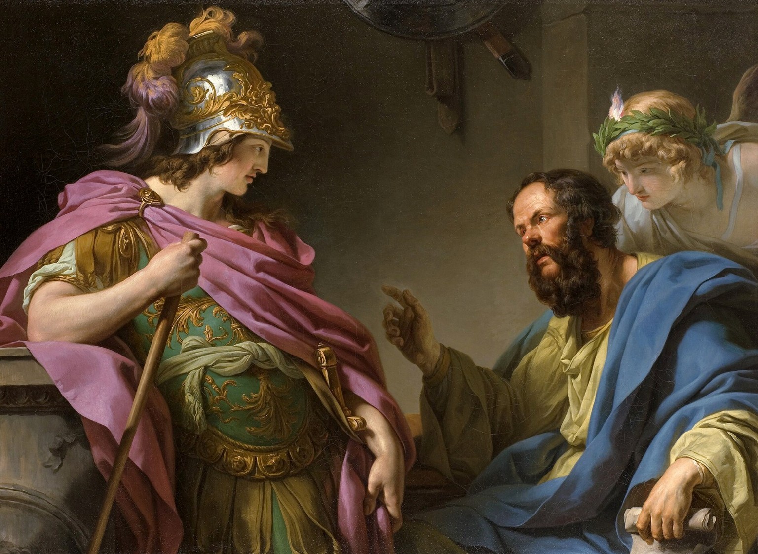 此外,一个在雅典政坛上起到举足轻重作用的历史人物开始出现在人们的视野中,这个人叫作亚西比德。与很多雅典政坛领袖一样,亚西比德出身显贵,还长得英俊潇洒,说话具有说服力,充满魅力。此外,亚西比德诸多生平故事中最引人注目的就是他与哲学家苏格拉底之间的故事,普鲁塔克在《亚西比德传》中说,苏格拉底的恩惠与爱慕(favour and affection)对亚西比德的经历与名声影响甚深,从中我们也可以看出苏格拉底与亚西比德之间亦师亦友的紧密关系。