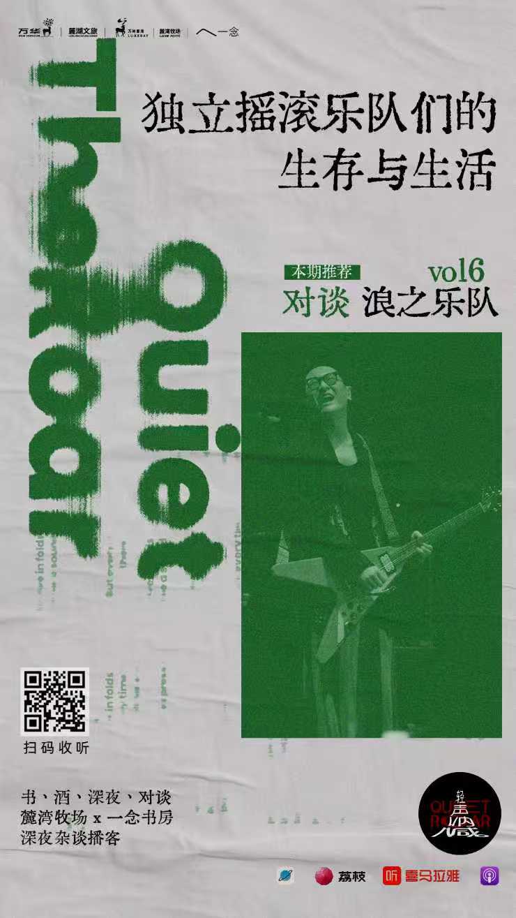 轻声呐喊第六期节目,由一念食酒书房掌柜老赵主持,与浪之乐队吉他手/主唱李勇、浪之乐队吉他手金旭,以及音乐人李想,常驻嘉宾精神超市主理人家玮围坐畅谈,聚焦独立摇滚乐队的音乐坚守与现实生活。从90年代的磁带、打口带情怀,到乐队成立后的发展与专辑创作,再到当下被手机、流量裹挟的行业现状,嘉宾们坦诚分享了玩摇滚数十年的真实状态:从十六七岁的一腔热爱,到四十多岁在谋生与创作间的拉扯;从为自己发声的艺术初心,到被碎片化时间磨去创作灵感的当下困境。