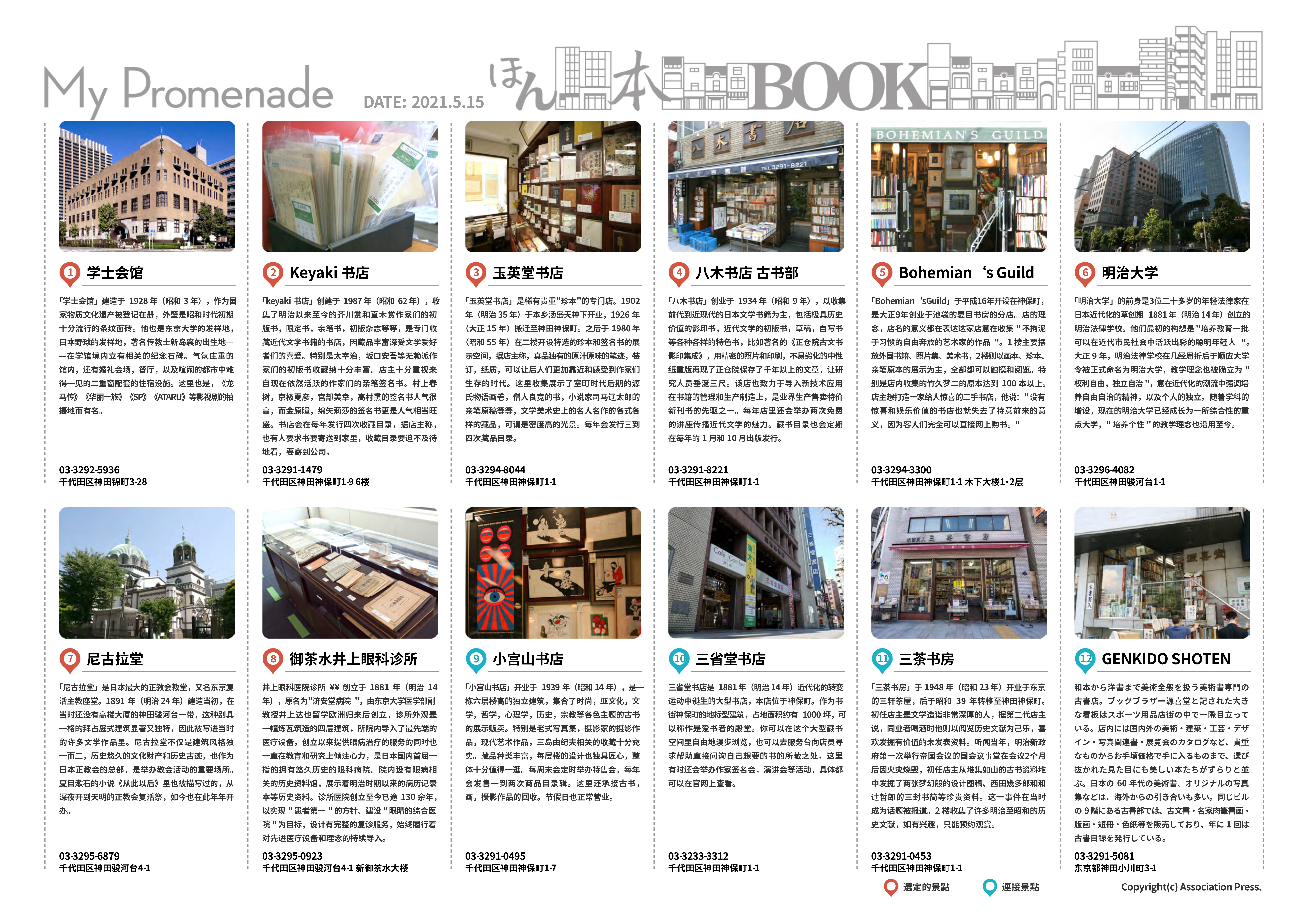 我们依照个人购书经验与官方攻略,总结了一些更适合中文游客的神保町线路与值得一去的书店名单,也录制了很多来自书店街的声音,希望一边和大家在播客中“散步”,一边探索这条“全世界最酷街区”的真正魅力所在。