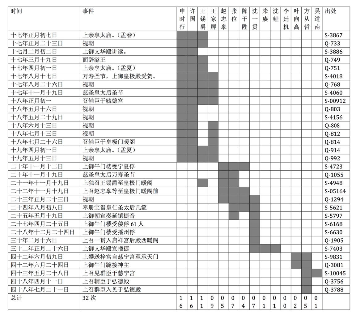 2、内阁辅臣与朱翊钧会面次数统计表