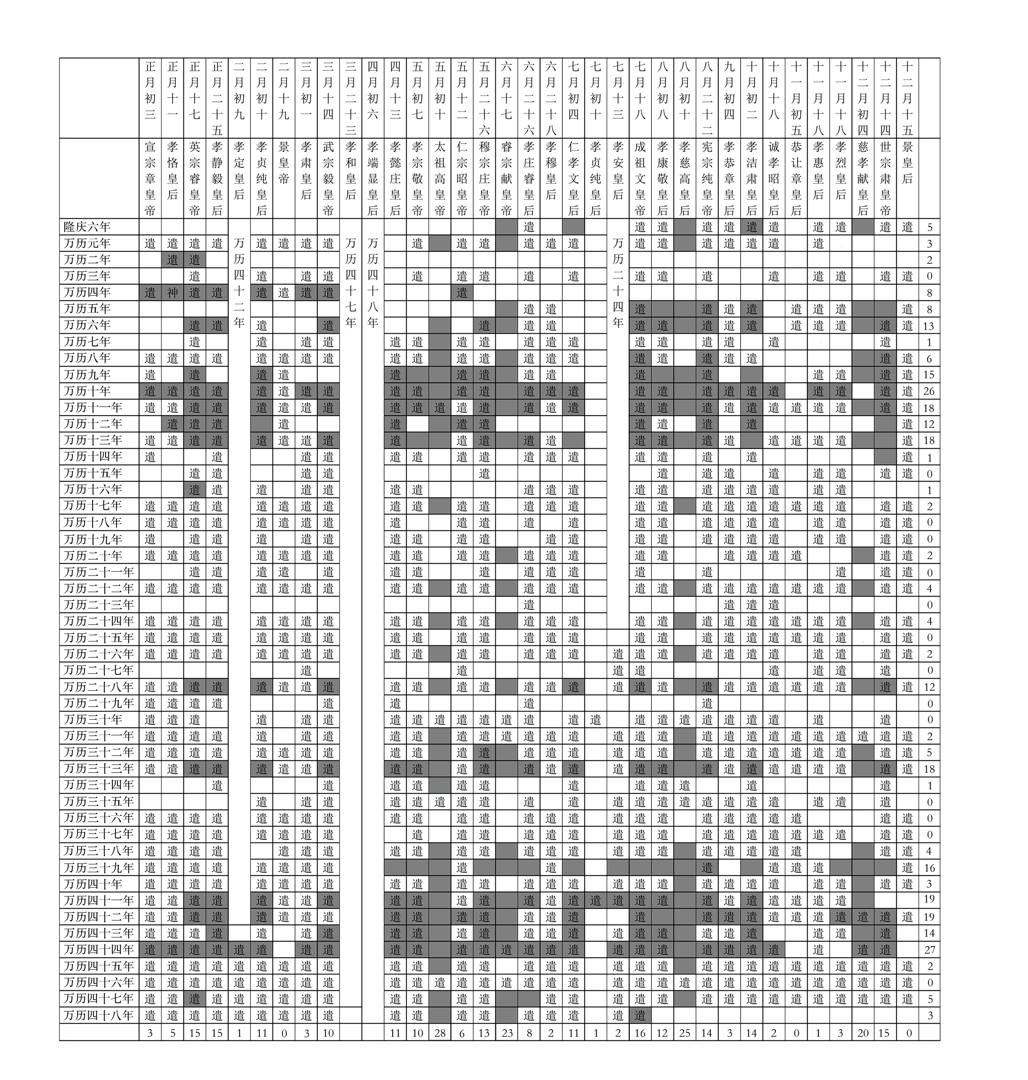 3、朱翊钧奉先殿行祭礼情况统计