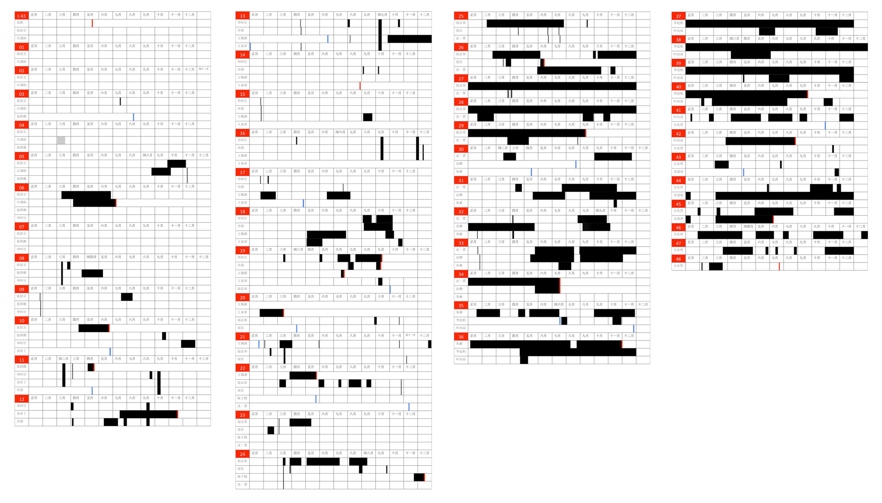1、万历朝内阁历年出勤表。