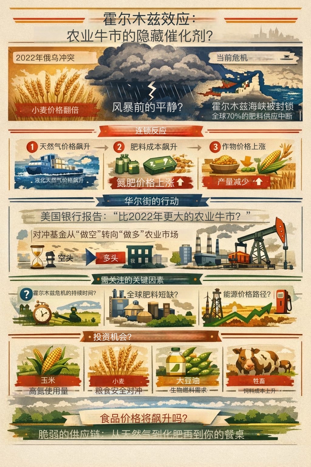 【节目概览】中东局势升级,所有人都在盯着原油,华尔街却已悄悄布局农产品。霍尔木兹海峡封锁如何通过“气-肥-粮”链条引发全球粮食减产?2026年会是复刻2008年的超级牛市吗?本期深度拆解这一隐秘而巨大的投资主线。