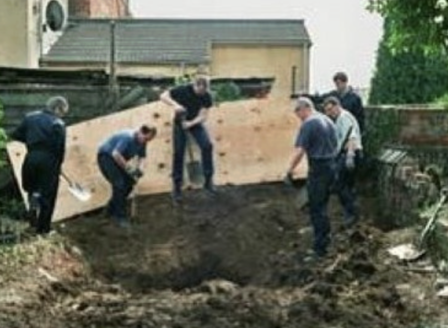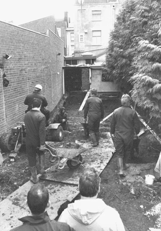 调查人员在挖克伦威尔街25号的花园