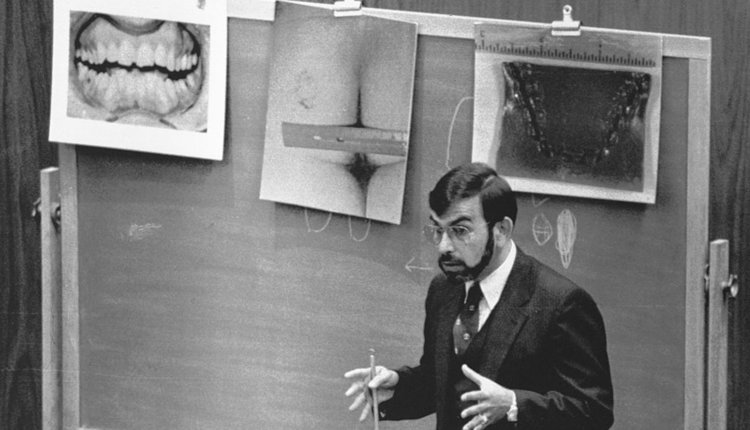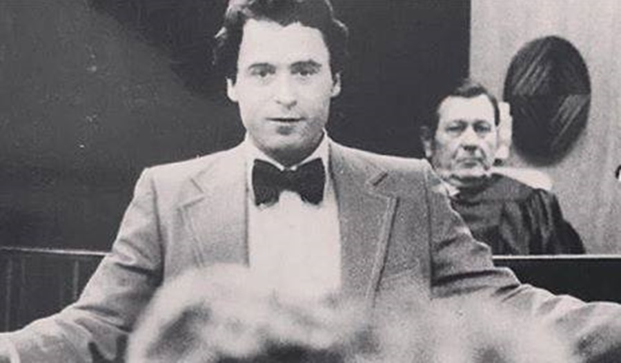 法庭上,泰德·邦迪穿着西装在为自己辩护