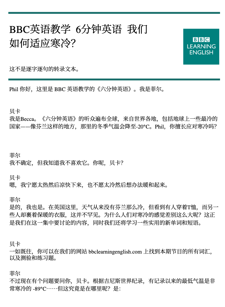 想要拥有全套学习资料(音频,文本,中英文对照翻译,课后练习题),看这里: