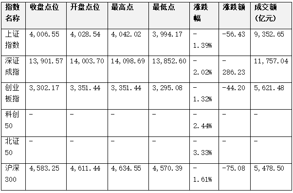 • 深强沪弱逆转: 三大指数集体下跌,北证50跌幅最大(-3.33%)