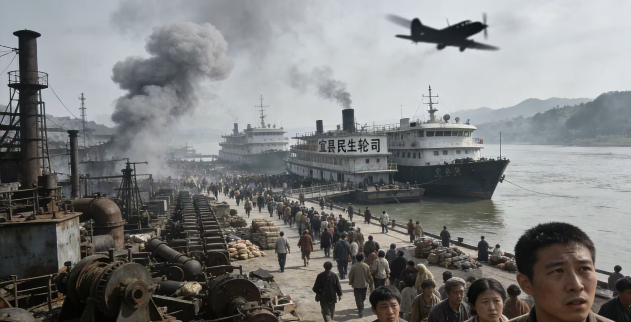 数十万逃难同胞、无数知识分子、技术工人与伤兵,挤在这座江边小城;数十万吨军工机械、工矿设备、工厂机床,堆集如山——那是整个中国仅剩的工业命脉,是抗战能否继续的最后底气。