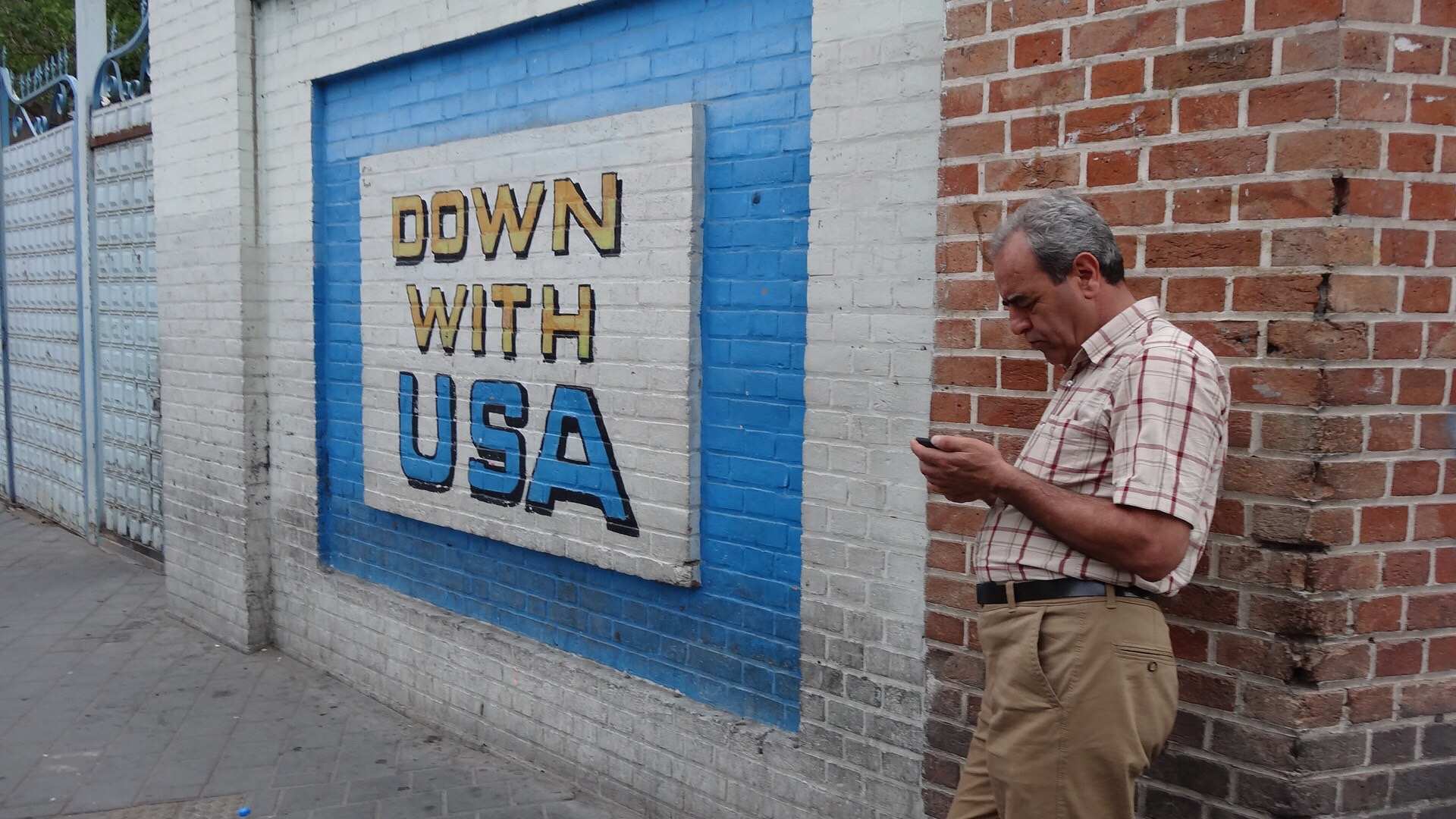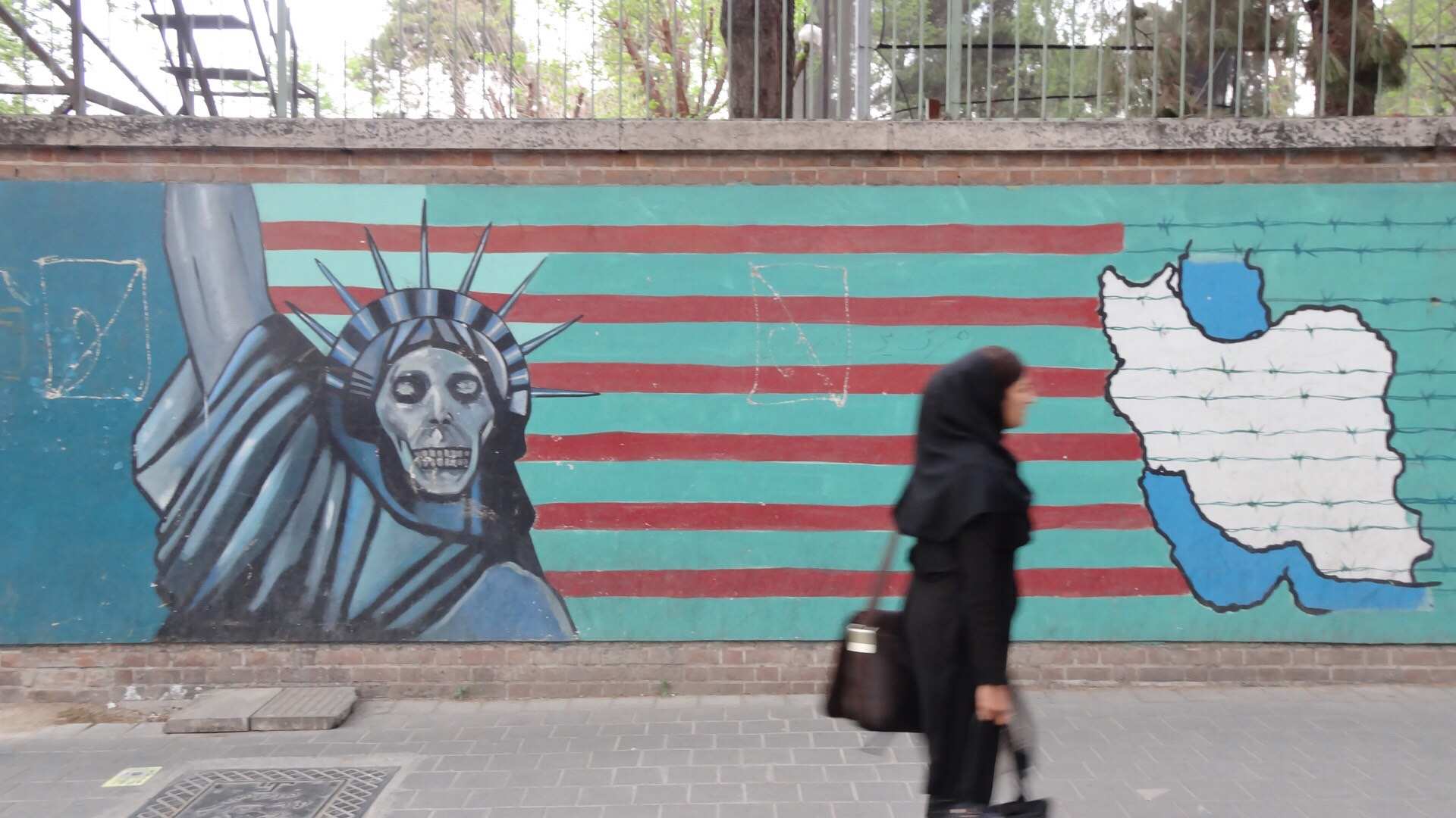 在德黑兰人们反对美国的街头壁画: