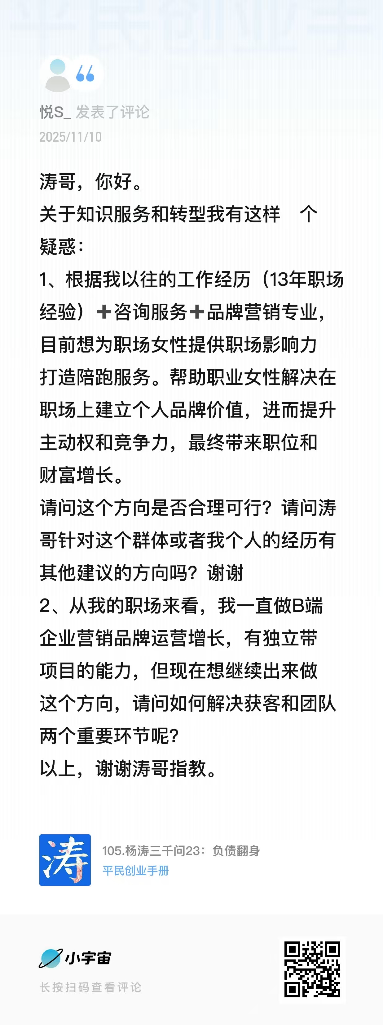 当前困惑:这个赛道虽然能带来收入,但过于垂直,做内容很难链接到未来志同道合、能一起做大事情的伙伴。