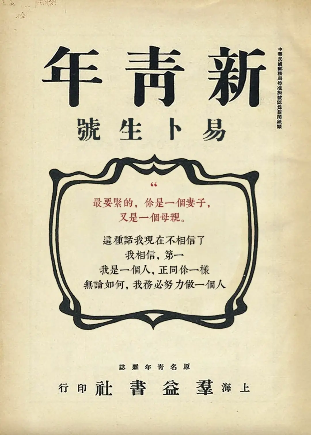 △ 1918年《新青年》4卷6号推出“易卜生号”,介绍《娜拉》《国民之敌》《小爱友夫》三部作品。“无论如何,我务必努力做一个人”——娜拉不仅代表女性,也代表一切有自我人格之觉醒的人