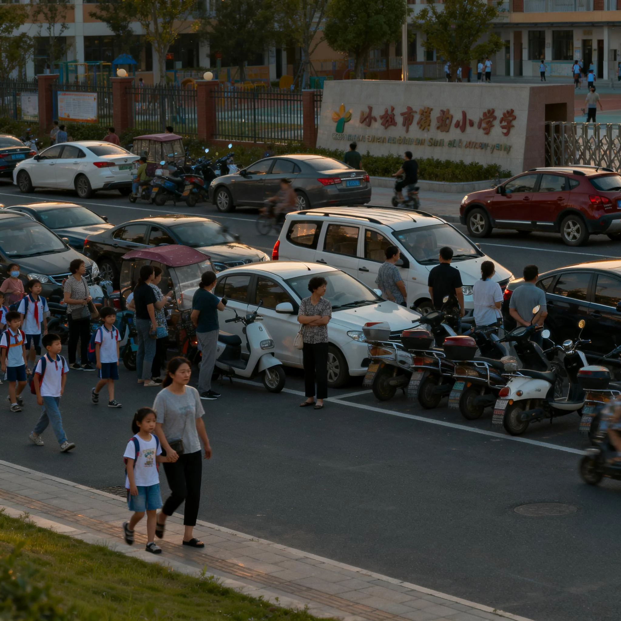 每当放学的铃声即将敲响,城市的某一角便会如期上演一场盛大的“集会”。无论是在幼儿园的栅栏外,还是在高中的校门口,那原本宽阔的马路瞬间变得狭窄不堪。放眼望去,摩托车、电动车、私家车层层叠叠,将校门口围了个水泄不通。人行道早已失去了行走的功用,被焦急等待的家长们占据得满满当当。如果你站在高处俯瞰,这更像是一条密不透风的“长龙”。