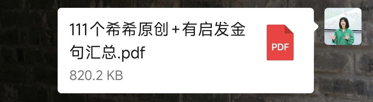 地球号+haynana 备注:小宇宙,关注公众号,申请进希希粉丝群,送你价值6位数希希亲自整理的111个原创金句