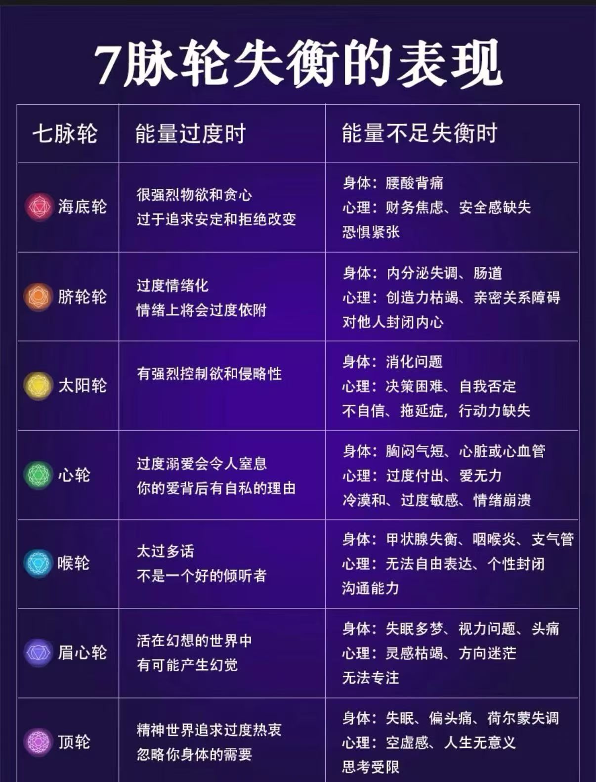 (七脉轮失衡和不足会产生的影响)