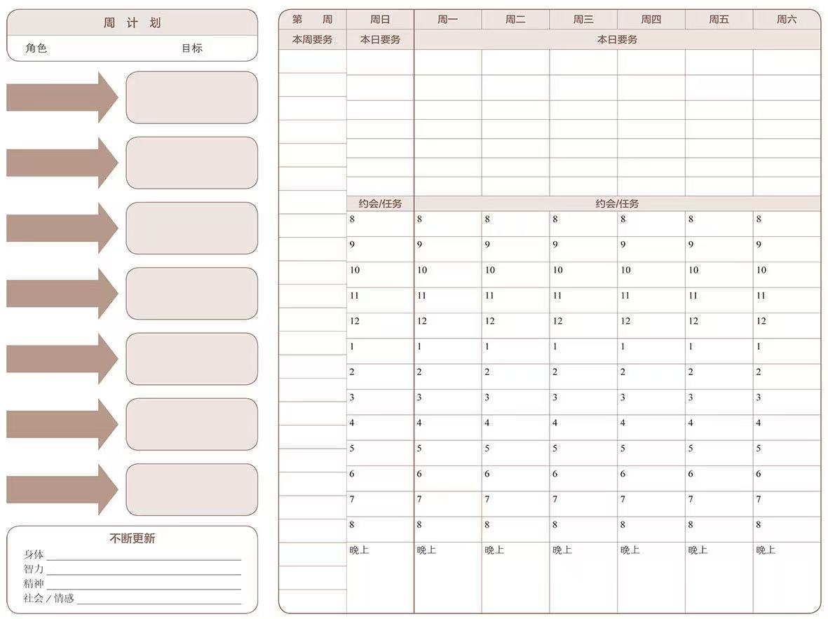 乍一看,这只是两个简单的表格(表格图片在文末),其实是在教导如何在有限时间内实现最大效能,同时保持生活平衡。