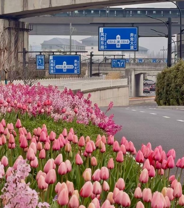 上图:前段时间大火的杭州萧山区的一个开满了郁金香的绿化带(图片来自网络)