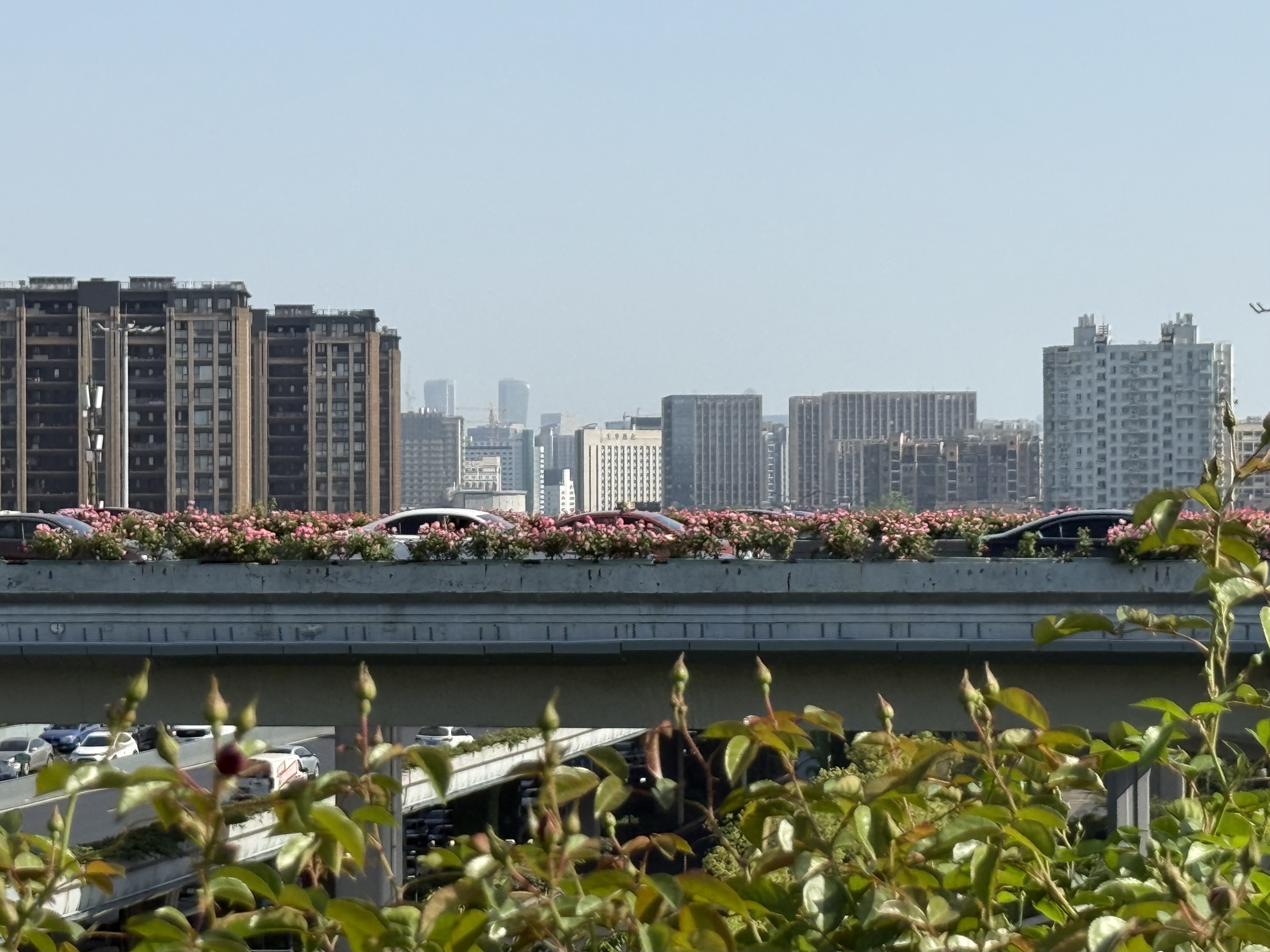 上图:高架上的月季纳税花, 2025年4月18日摄于秋石高架