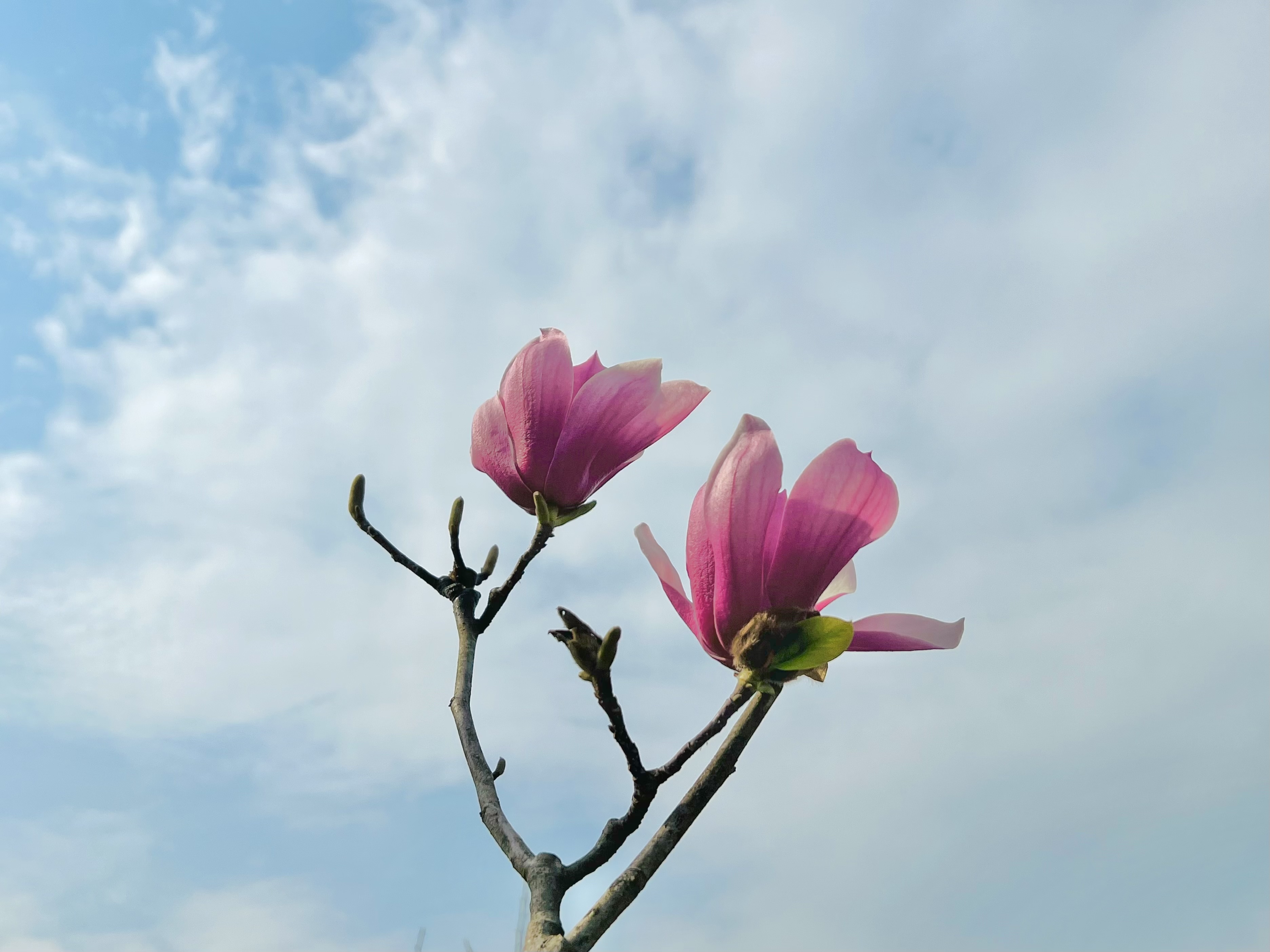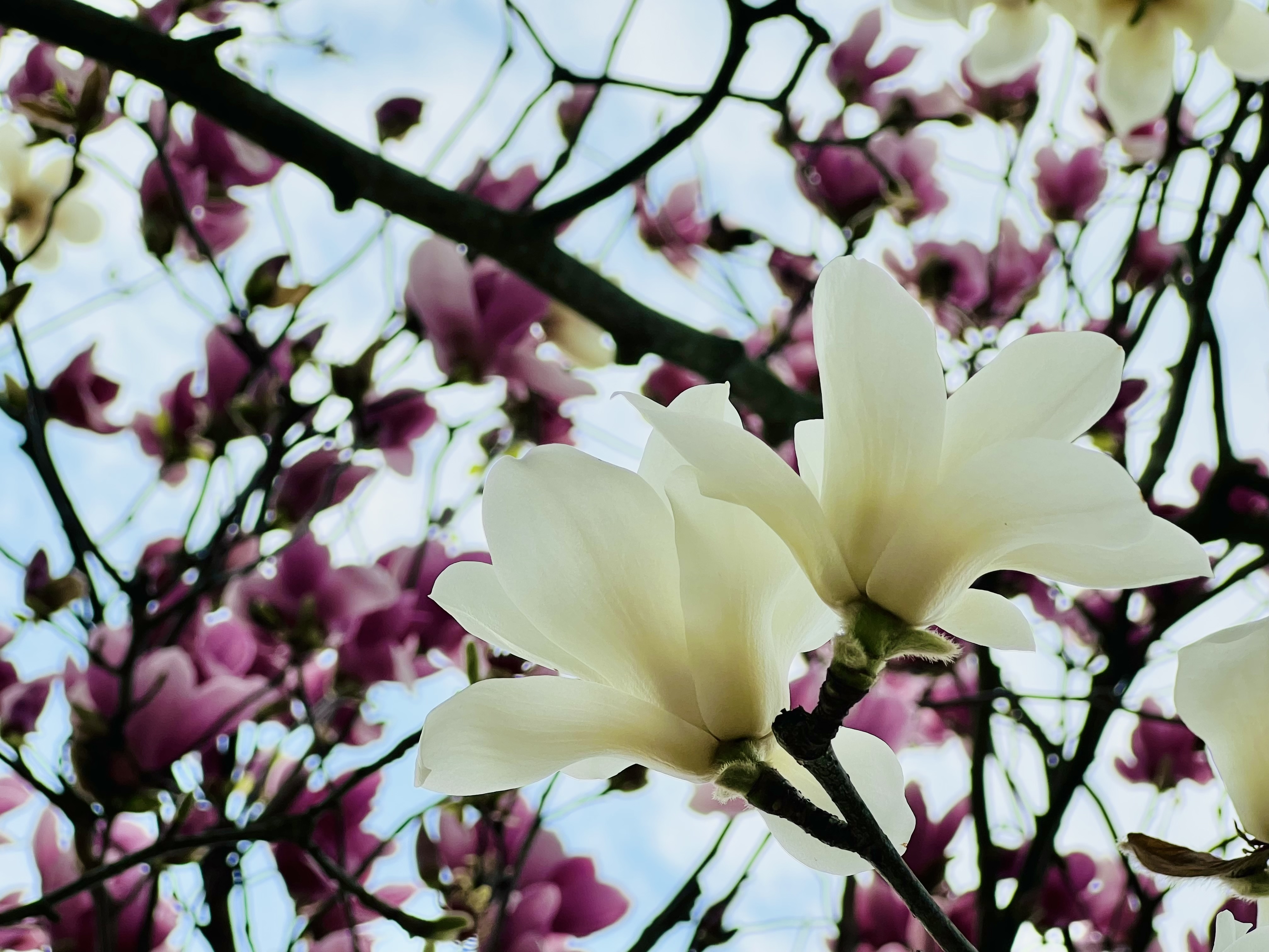 上图:外紫红内白的二乔玉兰,2023年3月11日摄于莫干山玉兰花大道