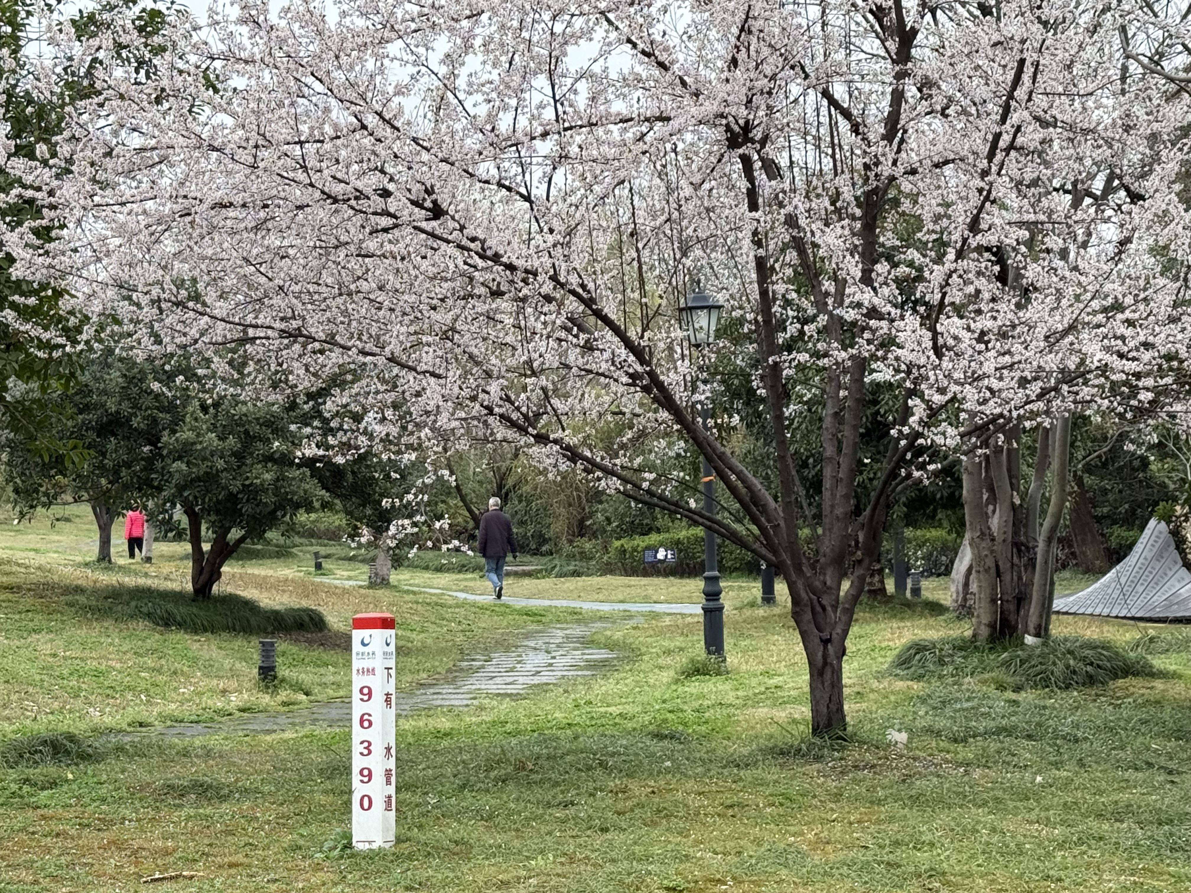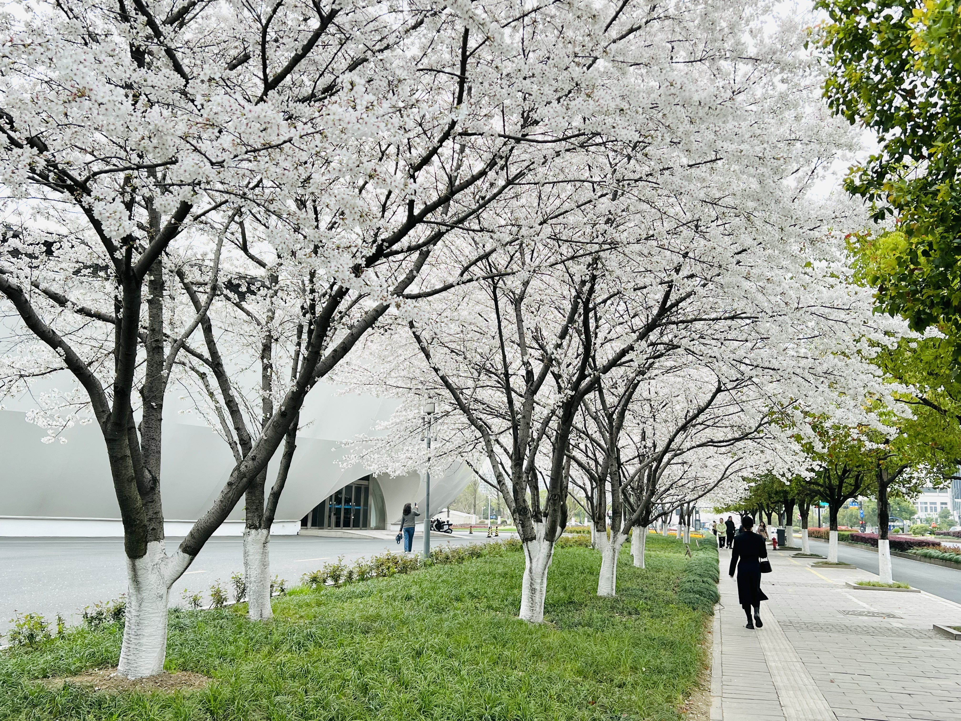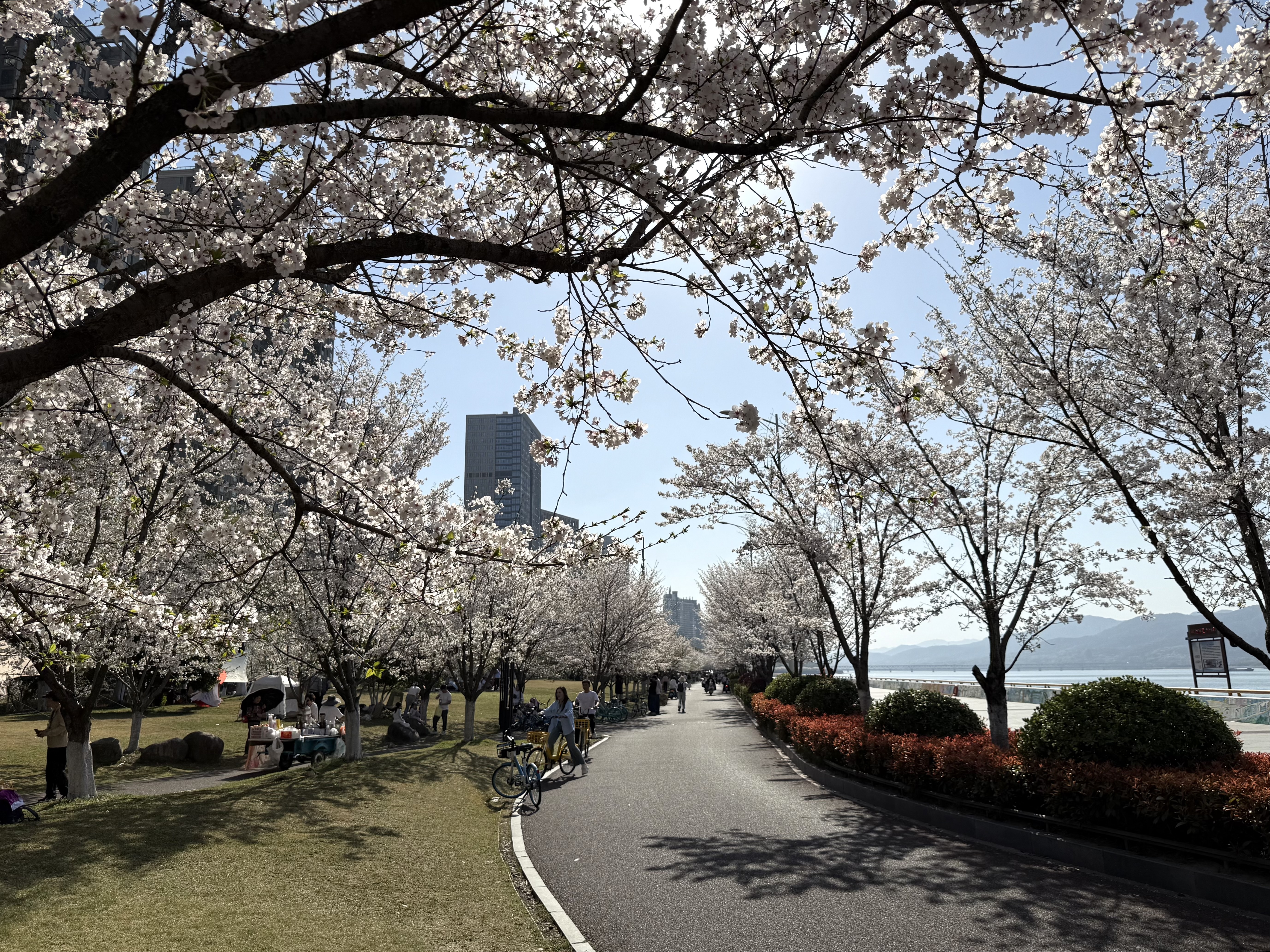上图:杭州滨江樱花大道(樱花跑道)一隅,2025年3月25日摄于滨江樱花跑道
