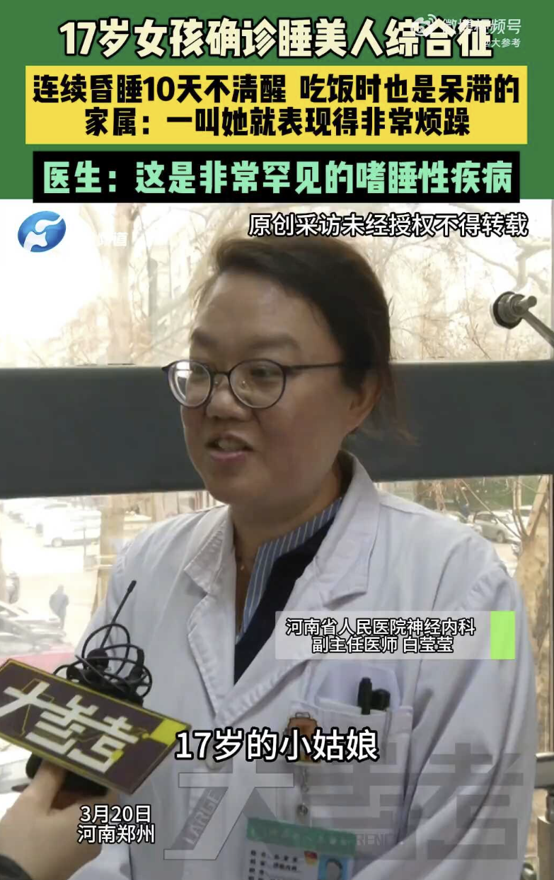 河南郑州一个17岁女孩,她只要进入睡眠状态,就会昏睡十天左右