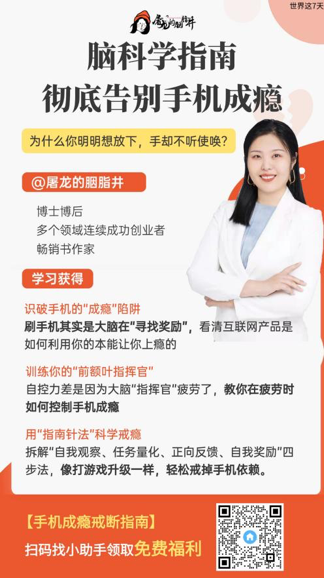 我们还给《世界这七天》的听友们申请了专属福利,扫描下方海报中的二维码,添加真人助手,即可免费领取成瘾破解干货资料包(含指南针法详细教程、注意力训练技巧),让科学方法为生活减负~
