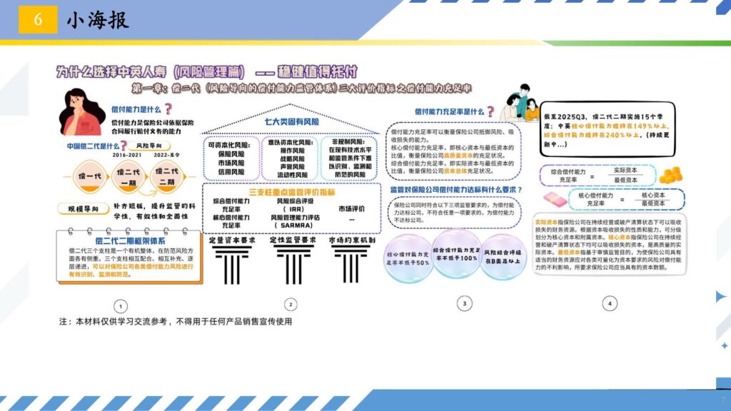 节目核心围绕那道让不少人头疼的“数学题”展开:为什么有的保单红利实现率只有71%,实际到手的收益却可能比100%实现率的保单更高? 裴老师通过具体的公式计算,揭示了预定利率、演示利率与最终客户收益率(IRR)之间的动态平衡,打破了盲目追求“高实现率”的认知误区 。除了收益测算,我们还深入探讨了衡量一家保司长期经营能力的核心指标 。从偿付能力充足率的定量分析,到SARMRA与风险综合评级(IRR)的定性考核,裴老师解析了监管如何通过“三大支柱”对保司进行严密的差异化管理 。