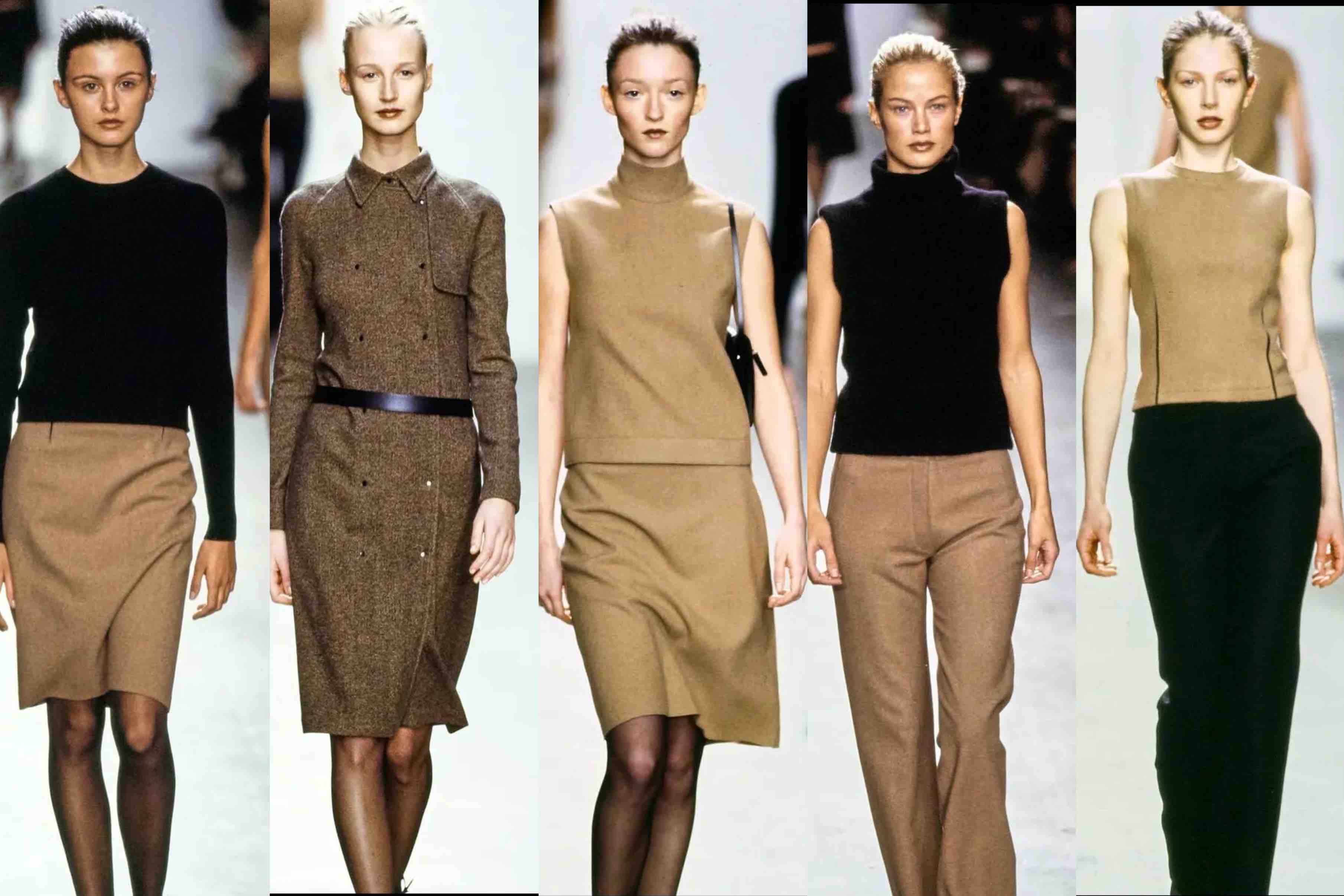 如果说80年代的时尚是在展示权力,那90年代,是一种安静的收回。黑色大衣、白衬衫、没有装饰的连衣裙。