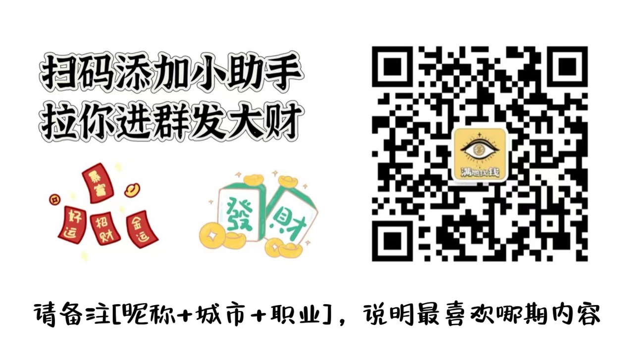搞钱的路会有艰难,抱团走过会更简单。想要加入满地找钱听友群的朋友,或者是想与满地找钱展开商务合作的个人/品牌方,请添加小助手微信:钱钱(Morethan100w)、财财(MoreThan-100w)
