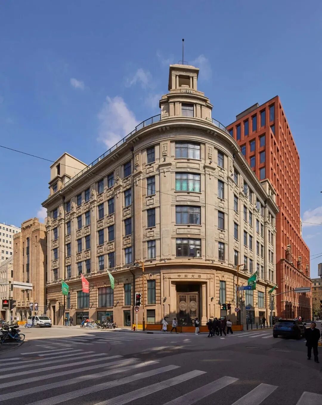 从一百年前开始,北京路和圆明园路向来都是人流涌动的街角,中实大楼前的马路上,黄包车夫踩着布鞋飞奔而至,背后车上的绅士戴着礼帽,身着长衫,跨下车厢,匆匆转过身递给车夫一个银元。穿过青铜铸成的大门,顺着高耸的台阶拾级而上,涌进人流攒动的银行大厅。这是百年前金融街忙碌的一角。外墙的门楣上刻有“中国实业银行”的字样,顶部塔楼上的「1929」依稀可见。