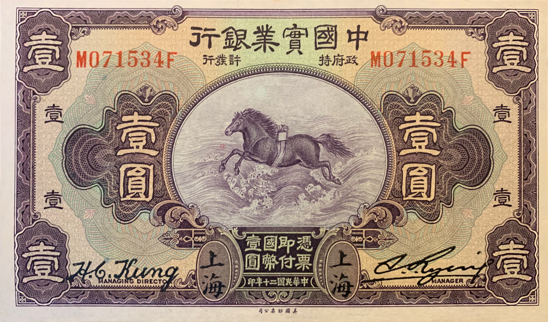 中实大楼的名字源于在1915年诞生于天津的中国实业银行。1919年,中实银行在上海天津路建立分行,并在第二年获得了发钞权。当时,中实银行的纸币发行业务发达,信用显著。在30年代初期,银行存款已超过4000万元,在全国重要商业银行中居列第八位。值得一提的是,中实银行发行的纸币图案非常有文化含义,一元纸币的背后印的是一张“神马驰海”图,描绘着一匹背着盒子的骏马在波涛中疾驰的画面。盒子里装的是《河图洛书》,寓意着中国古代思想的源头,天地运行的规律。1930年,中实大楼正式建成之后,业务蓬勃发展的中实银行正式进入大楼办公。1932年,银行总部也从天津迁至了上海。
