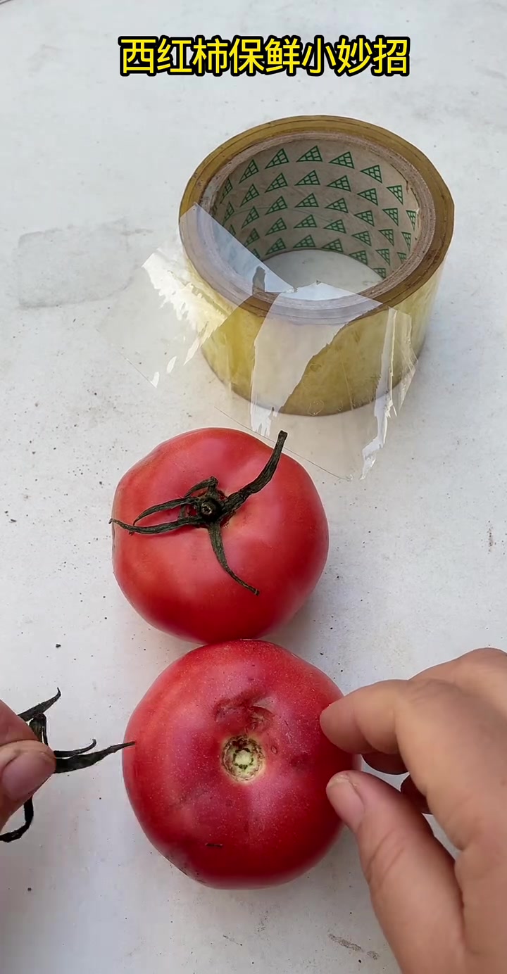 西红柿保鲜 用透明胶带贴住