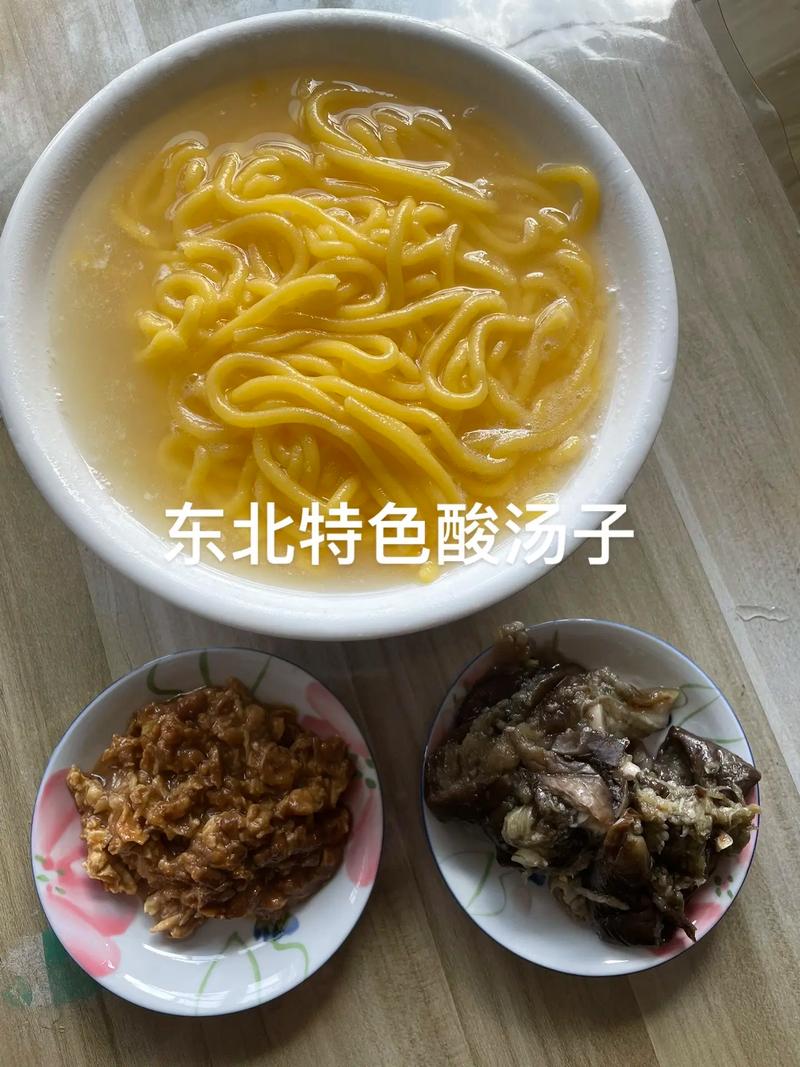 【酸汤子】又称汤子、搁豆子,是一种用发酵面碴子做的面条状的食物,是酵米面的一种,吃起来会有酸味的香气。