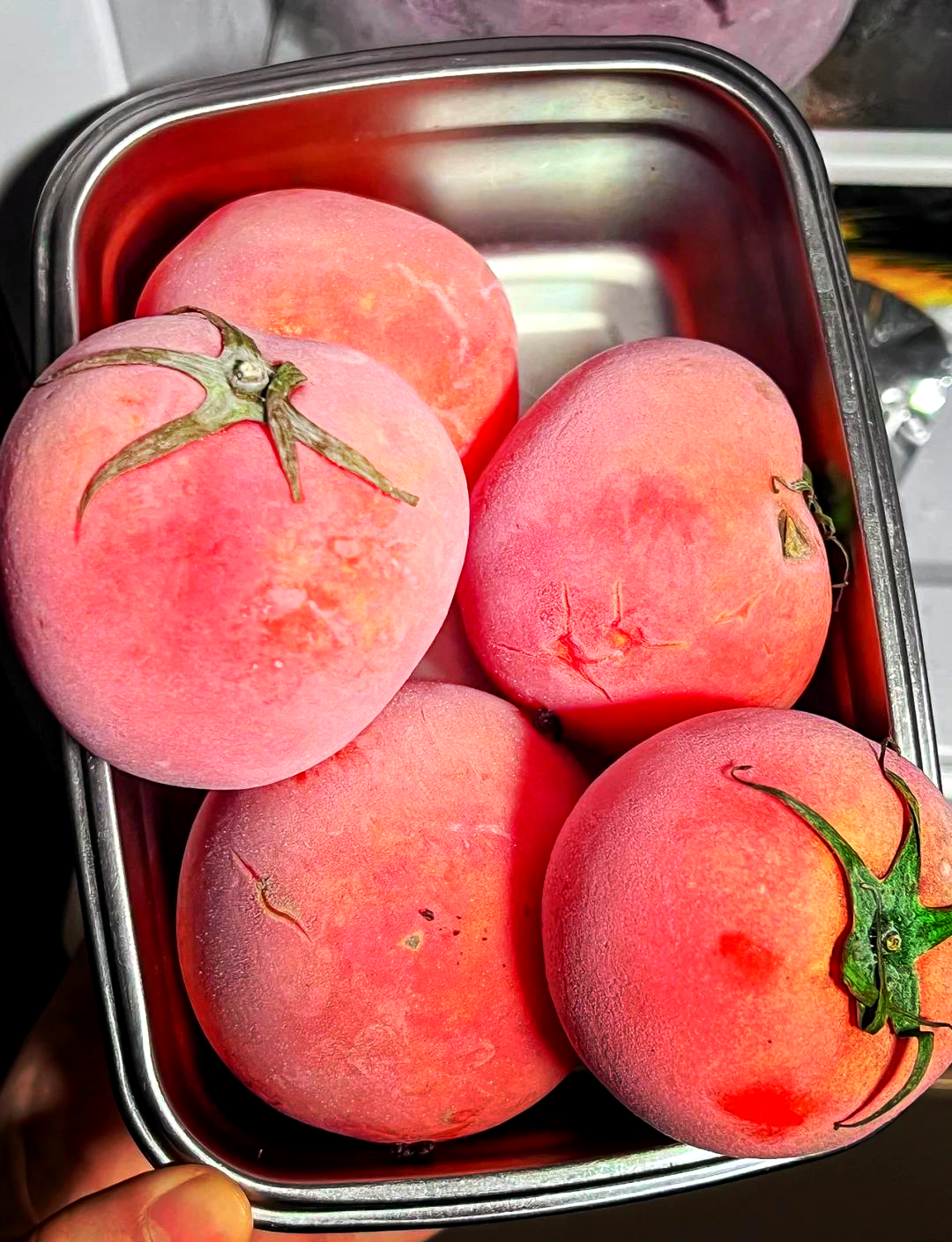 🍅冷冻西红柿,冷水泡10秒就能轻松剥皮