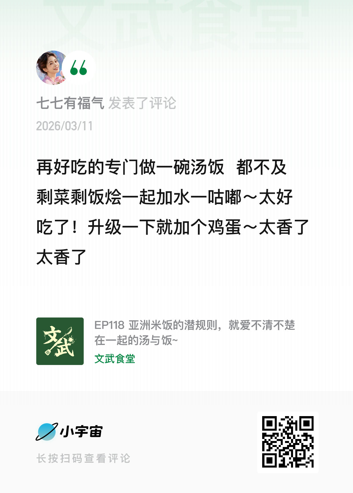 来自《EP118亚洲米饭的潜规则,就爱不清不楚在一起的汤与饭》上期留言