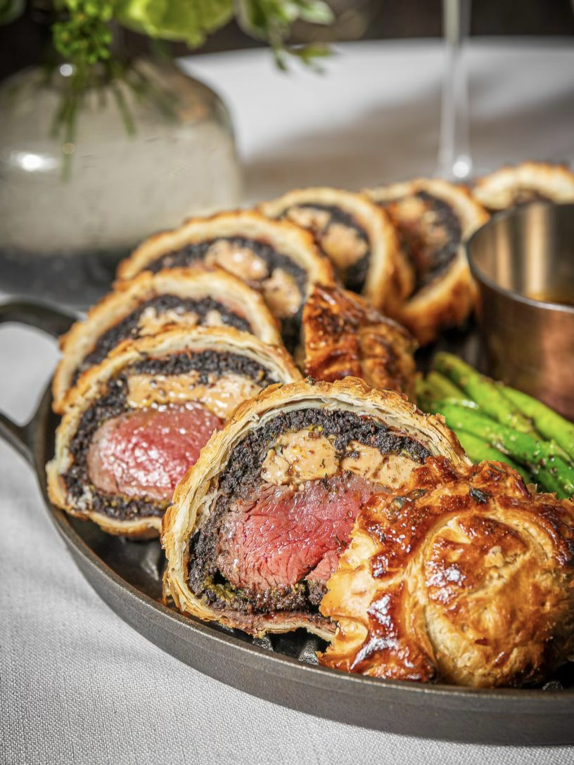 凯西拆解真正的惠灵顿工艺,包括复杂的开酥皮、用火腿隔绝肉汁、熬制蘑菇酱以及精准控温等细节 。