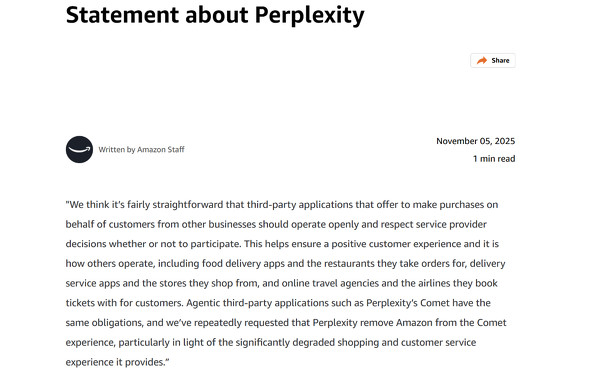 Perplexity和亚马逊对本案的回应